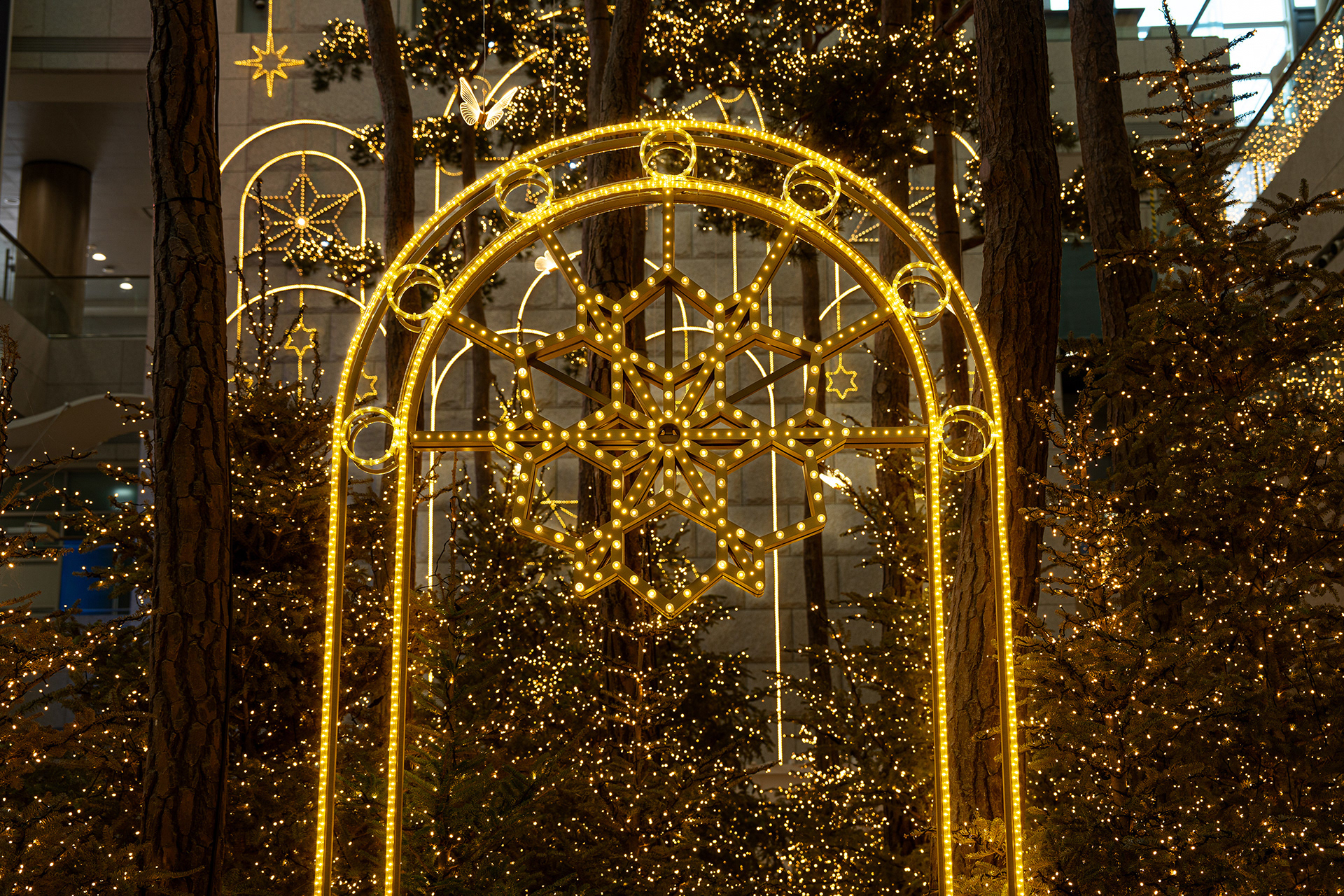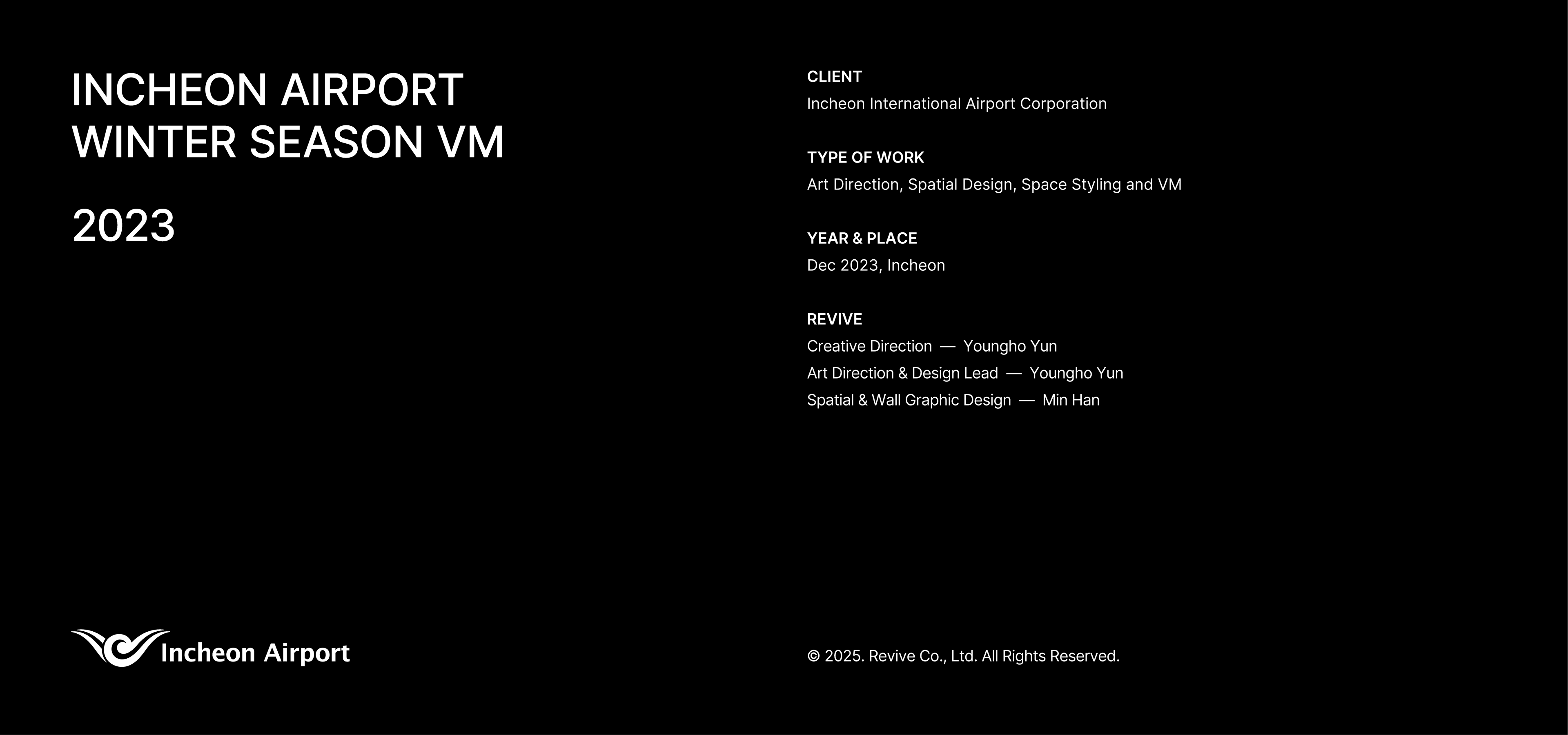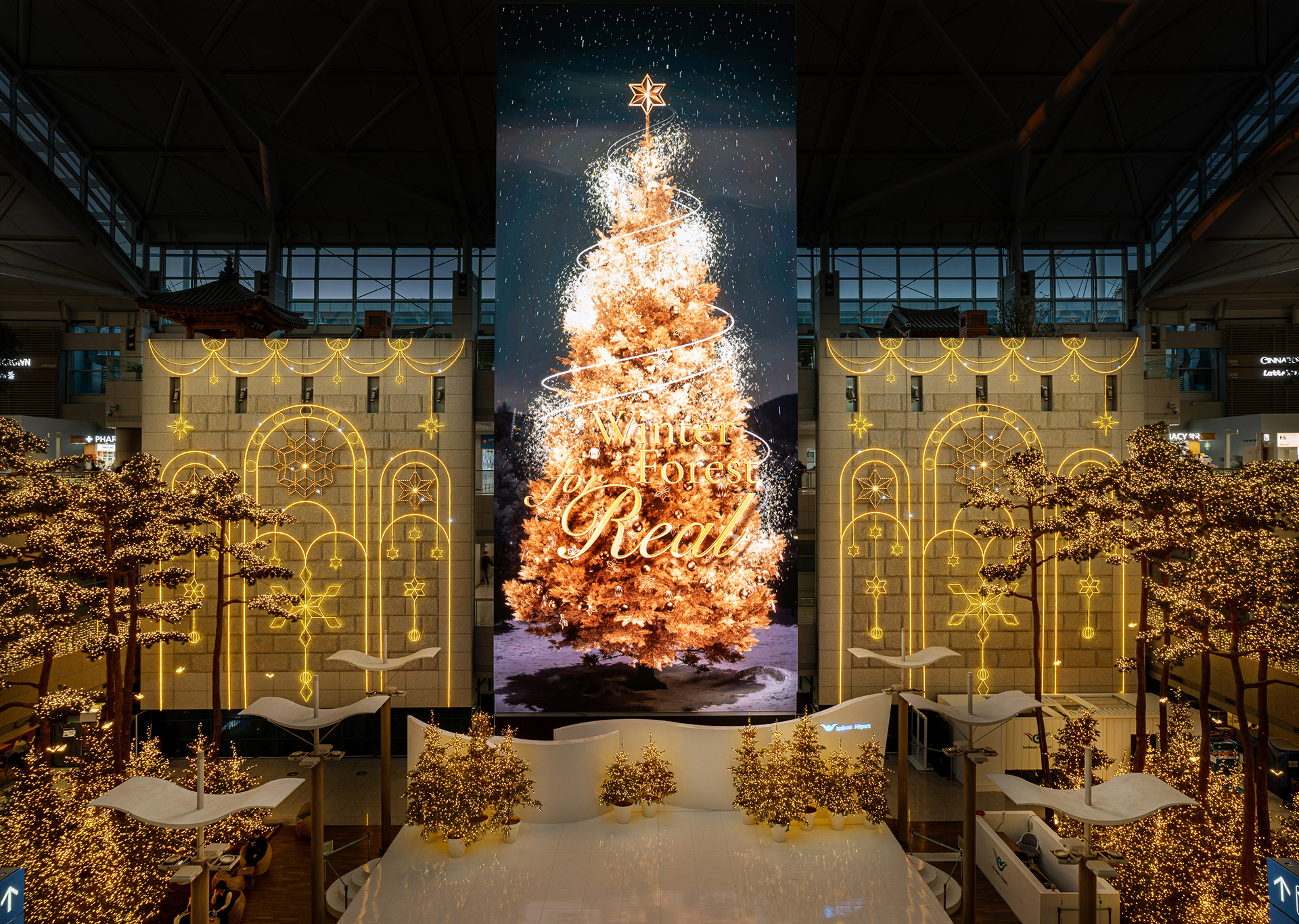 In 2023, REVIVE designed, produced, and installed Winter Forest for Real at the Millennium Hall, located on the first floor of Terminal 1 at Incheon International Airport. Inspired by the essence of a true Korean winter forest, this Christmas installation was created to offer both domestic and international travelers a moment of rest and a uniquely Korean holiday experience.